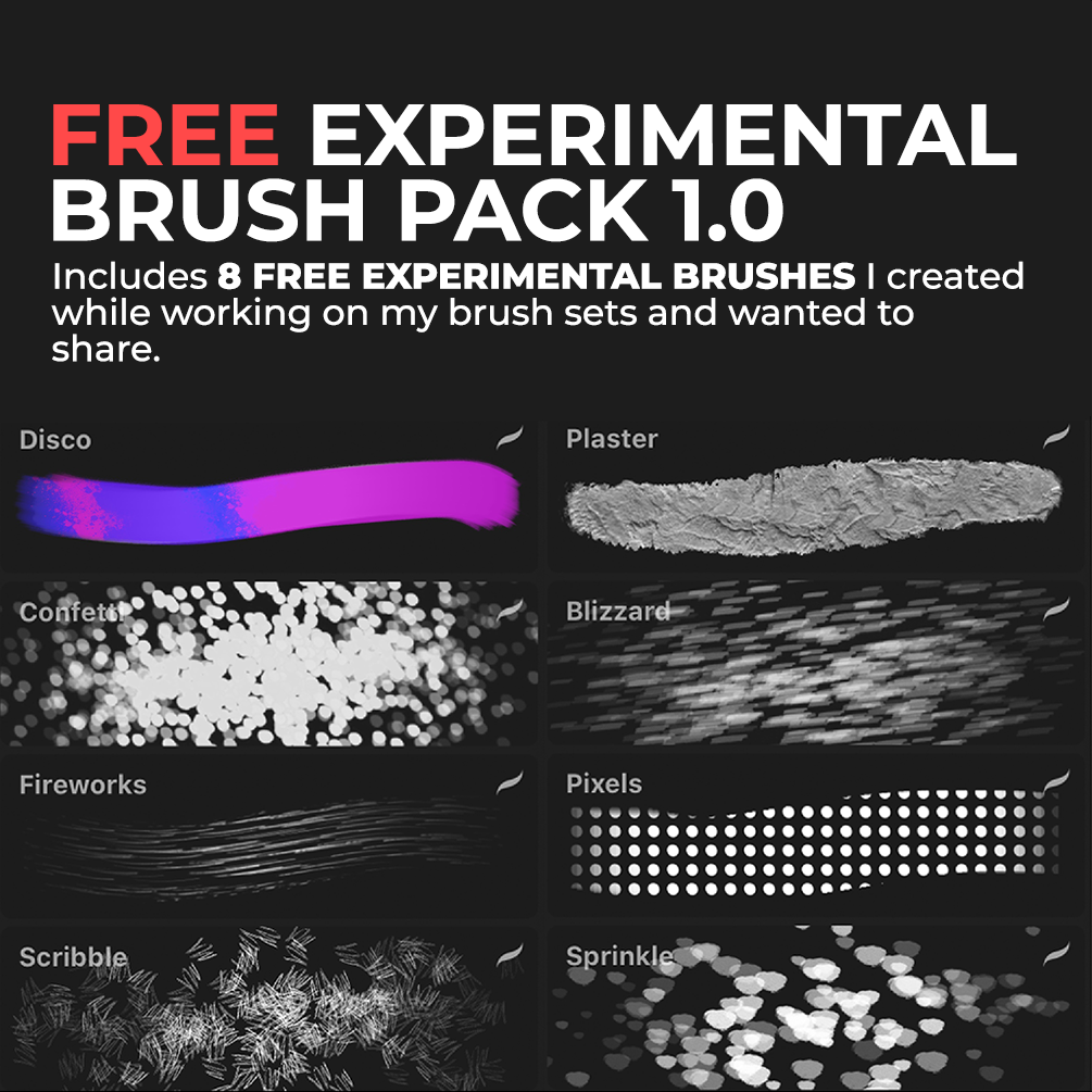 This FREE pack includes some of the experimental brushes that never made it to my other 230 brushes and Procreate tools! check them out. Originally I called them Crazy 8.