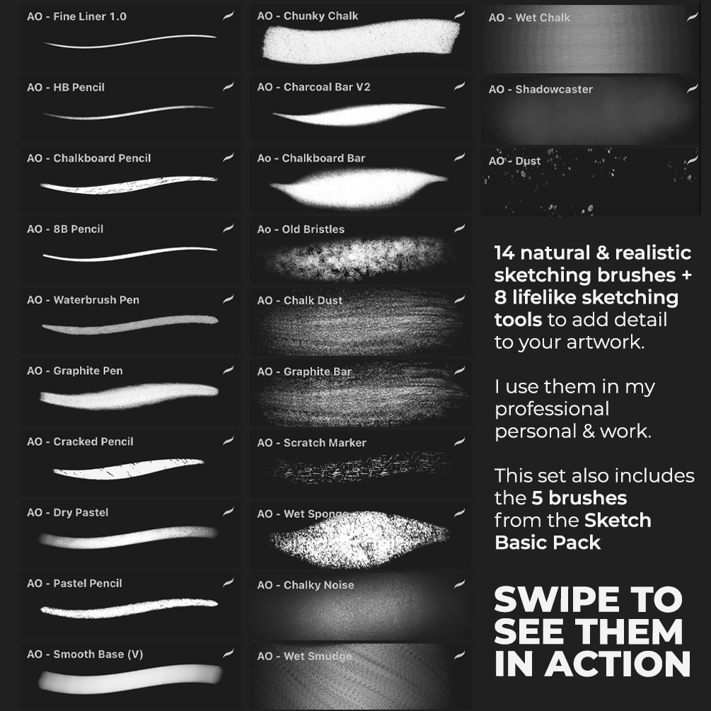 22 Professional set of Procreate Sketching Brushes. Sketching Pens, Shadows, Textures and Grain! and more | Asia Orlando Brushes