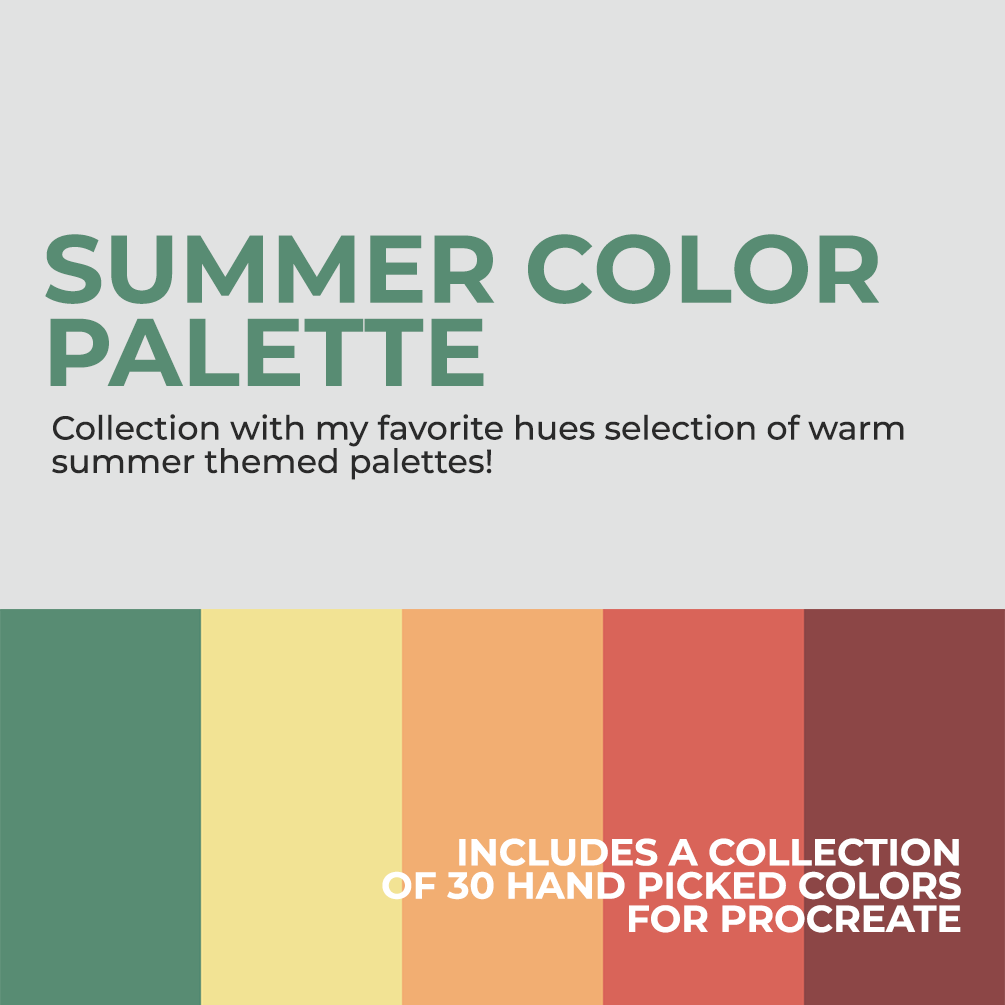 This one is the Summer Color Palette with 30 Color hues I personally use in my illustration either client work or my own. The colors are vibrant, full of light, and perfect to communicate the summer carefree spirit.