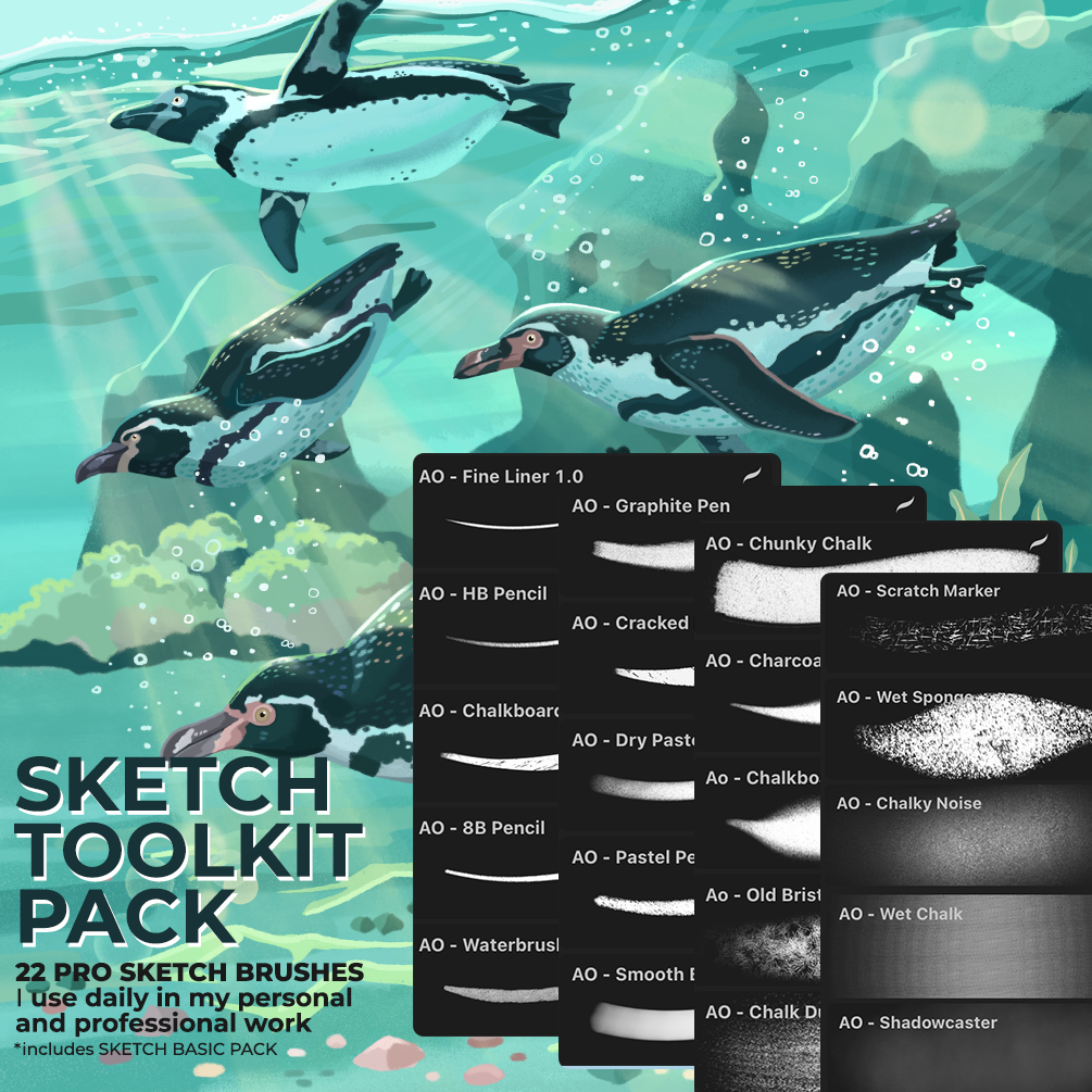 All the tools and brushes I created are supposed to feel like real-life tools, if you have paperlike for example on your iPad, you might feel you are drawing with a real pencil. I cannot wait for the day that the iPad pencil will have some sort of physical feedback when drawing, so I can include that also into the brushes.