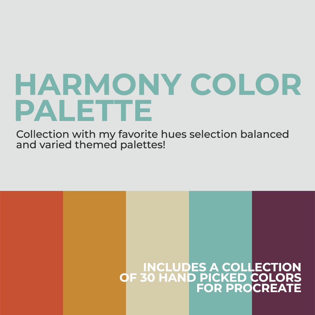This one is my Procreate Harmony Color Palette with 30 Color hues I personally use in my illustration either client work or my own.